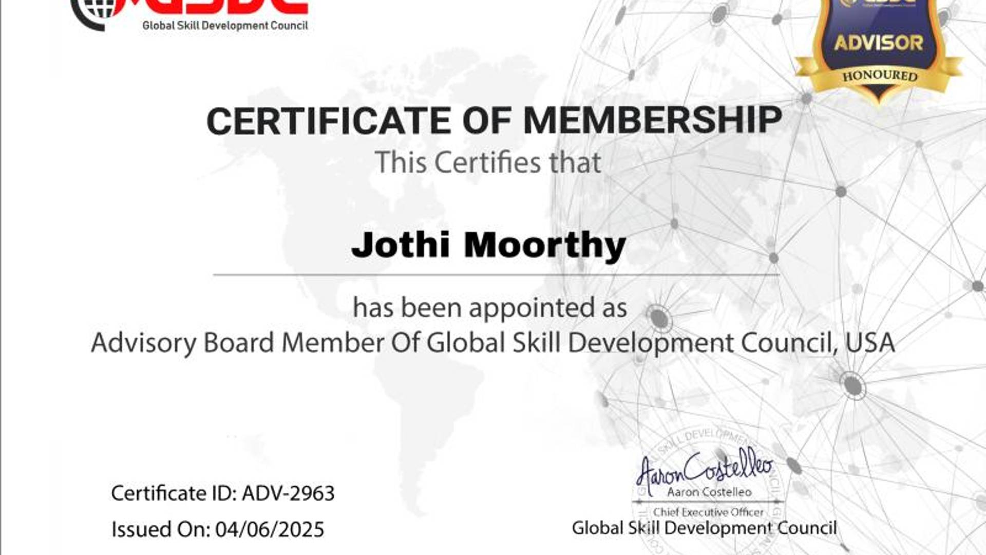 Honored to join the GSDC (Global Skill Development Council) as an Advisory Board Member, helping shape the future of AI certification and skill development standards globally